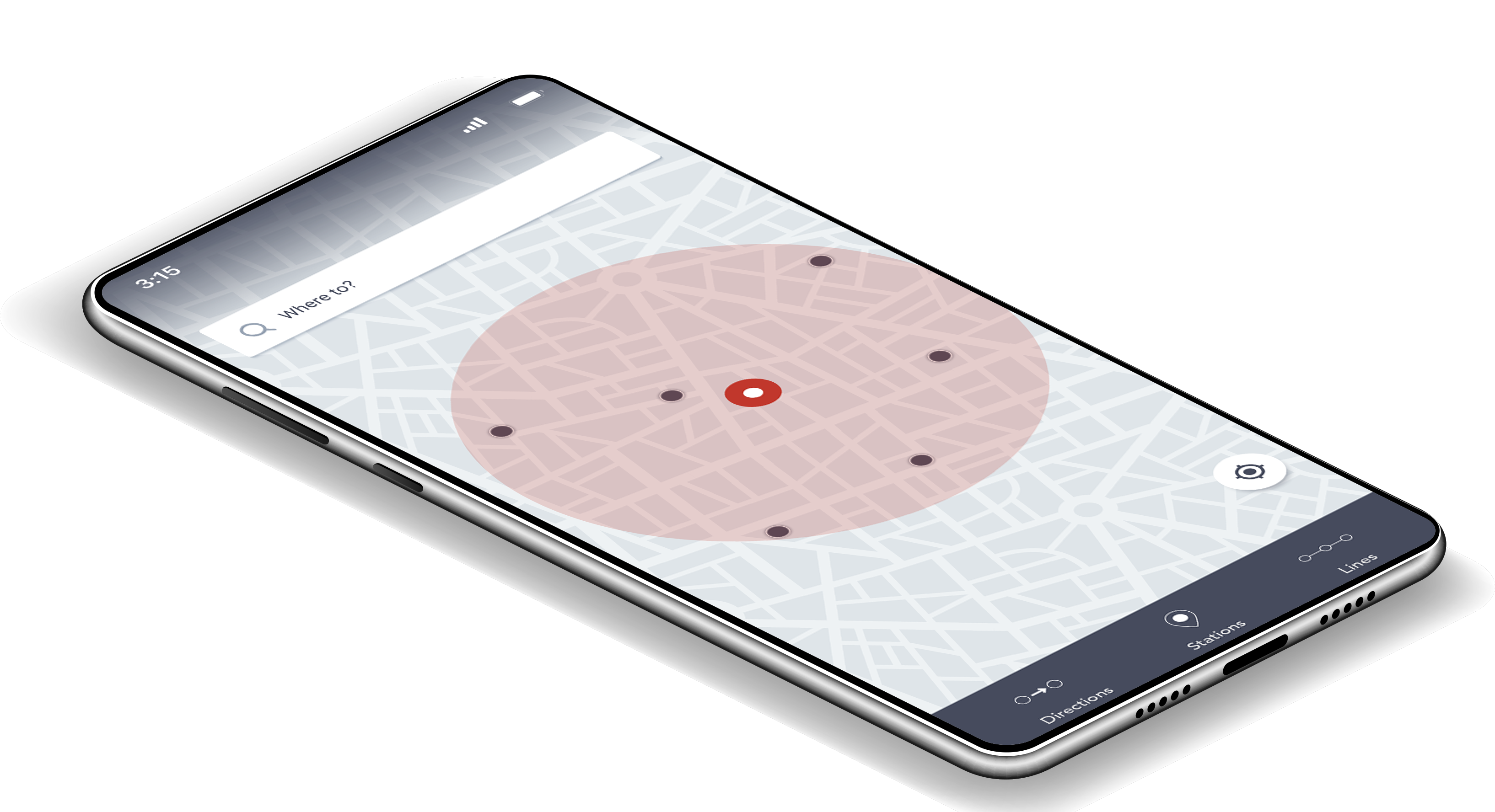By adding a geofence, we are addressing the user need to have a nearby bus stops feature as well as allowing our users to have a quick overview of nearby transit stops